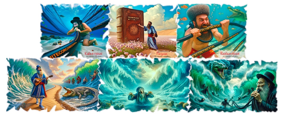 – Альо, Мендєлє Мойхєровіч? То Дімка Табачнік дзвоне – ми вийшли в заданий вами квадрат. Можна вже робити так, щоб море розступалося… альо… ну так, позивной Ґастарбайтер… ізвінітє, товарішчь Єсаул, праєбал… Так точно, товаріщь Єсаул, запомніл – отнинє мой позивной Пєдріла Мохнарилий… Єсть!!! А…, я діко ізвіняюс, мохнА́рилий ілі махнО́рилий… – продовжив через хвилю сплячий гепард – мохна́?… Я вас пойнял, товаріщь Мендєлє Мойхєровіч… Так точно – полєзєм за ето в нєраступівшєєся морє… Так точно!!! Єсть!!!…